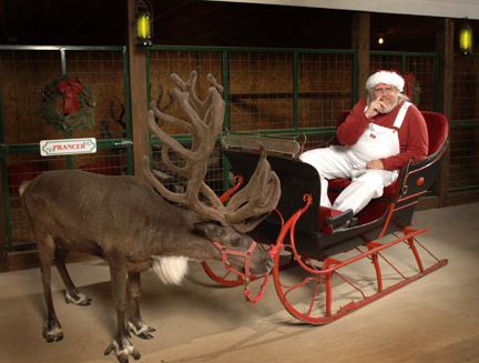 Cupid and Santa checking out the new sleigh at the Double R Reindeer Ranch. It will be great for short trips, but it's not big enough to hold all the toys on Christmas Eve. |